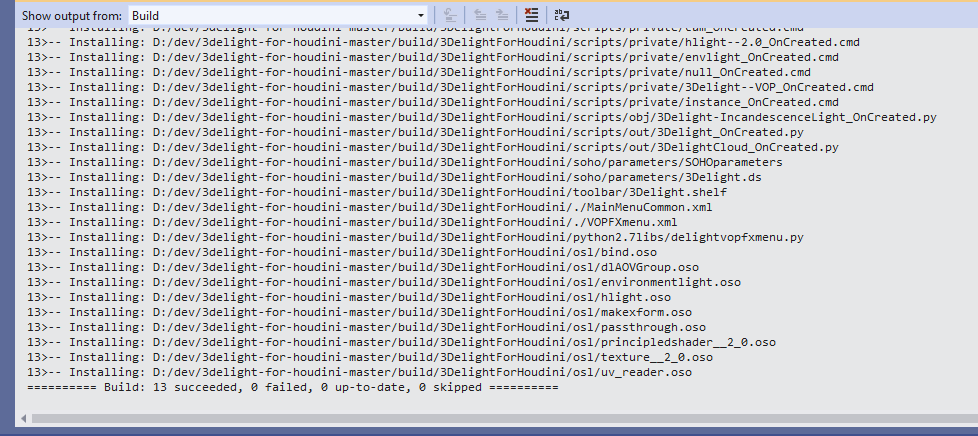 In the 3delight-for-houdini-master/build folder you will now see a 3DelightForHoudini folder.